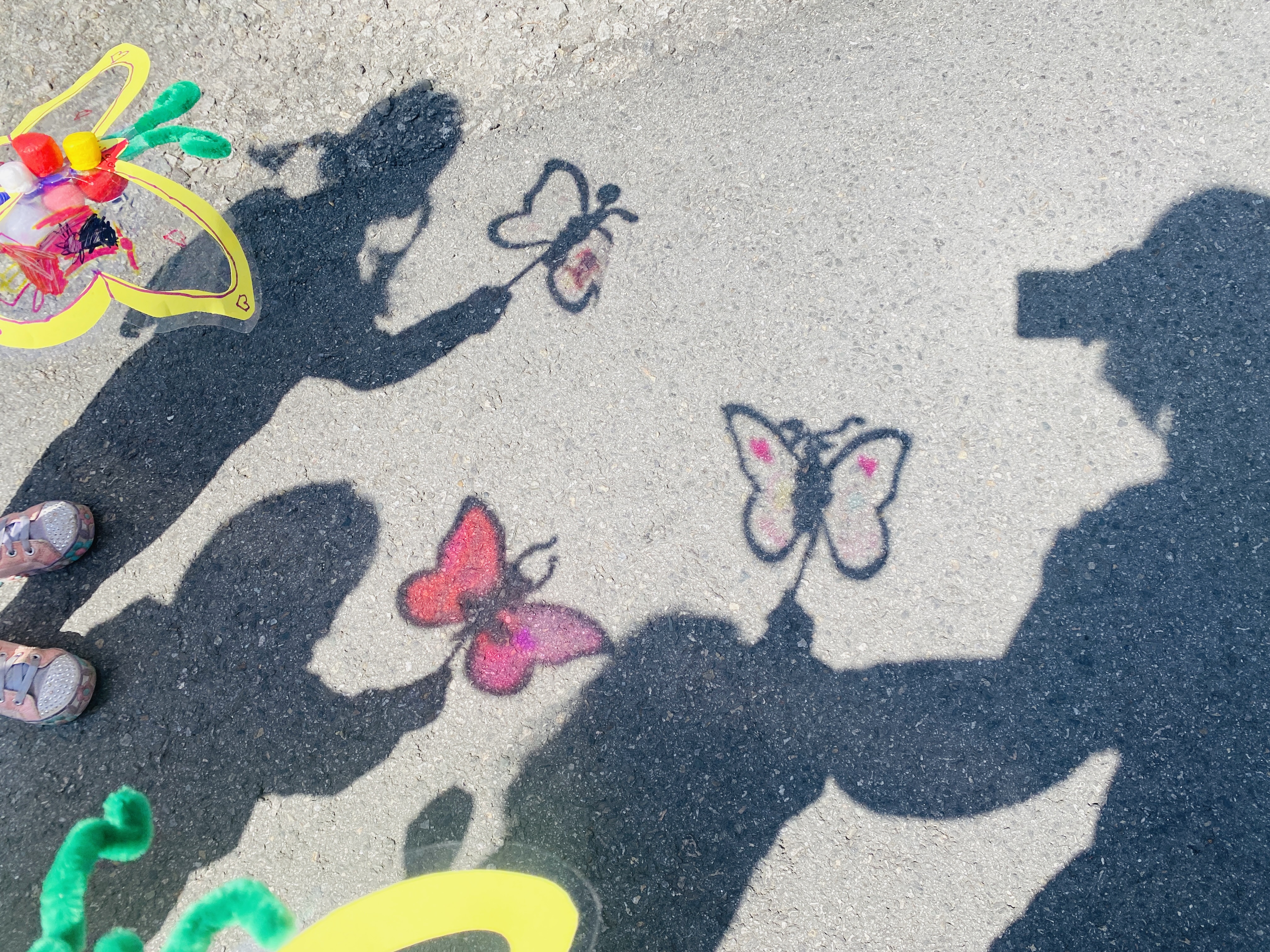 [ 귀염둥이 아이들이 바닥에 있는 그림자를 보고는 ]